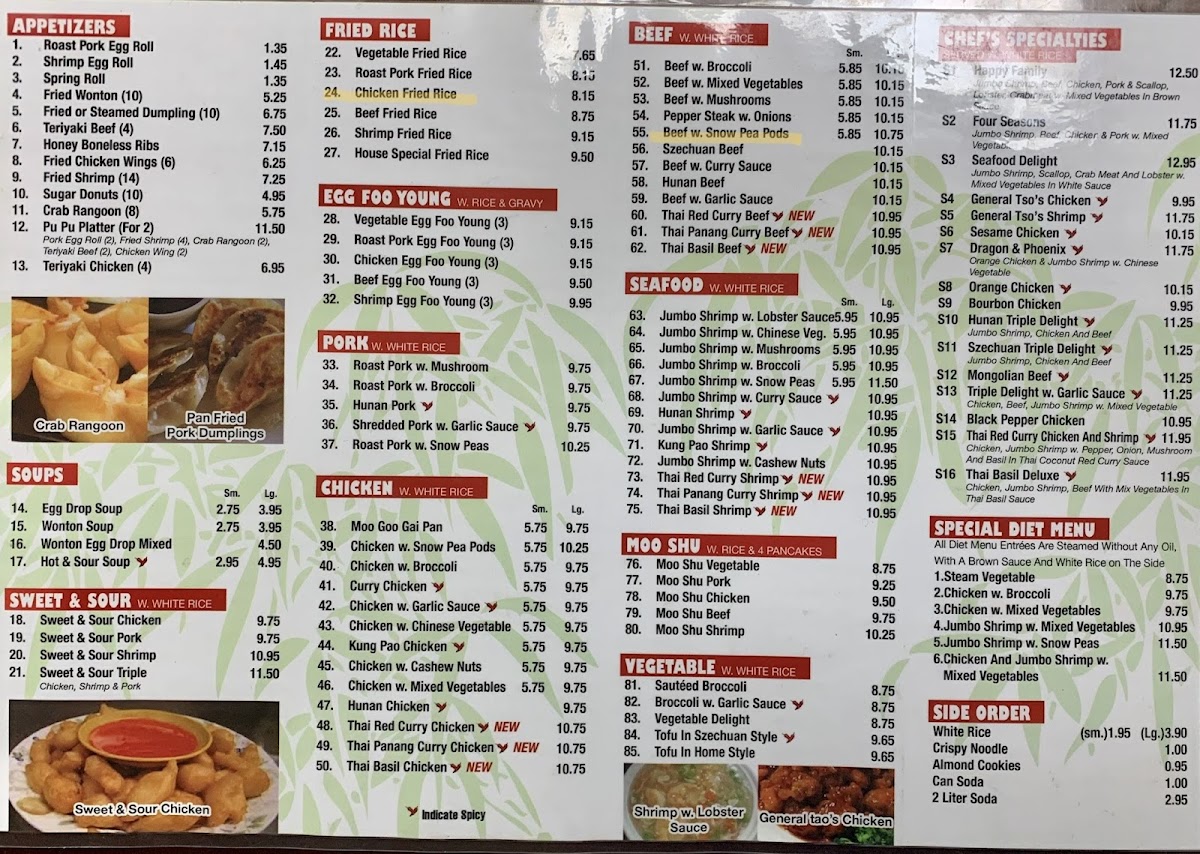 When you step into Lucky Bamboo Restaurant, you’re in for a treat that’ll keep you coming back for more. The Lucky Bamboo Restaurant Menu is a celebration of flavors with a variety of dishes that perfectly balance traditional tastes and modern twists. Located at 807 Buffalo St, Manitowoc, WI, it offers everything from fresh sushi to savory stir-fries, each prepared with the finest ingredients. Whether you're in the mood for a comforting bowl of soup or something a little more adventurous, the menu has options for everyone. You’ll find mouthwatering appetizers to start, vibrant entrees packed with flavor, and decadent desserts to round off your meal. With every bite, it’s clear that Lucky Bamboo is all about providing a dining experience that’s satisfying, delicious, and always memorable.